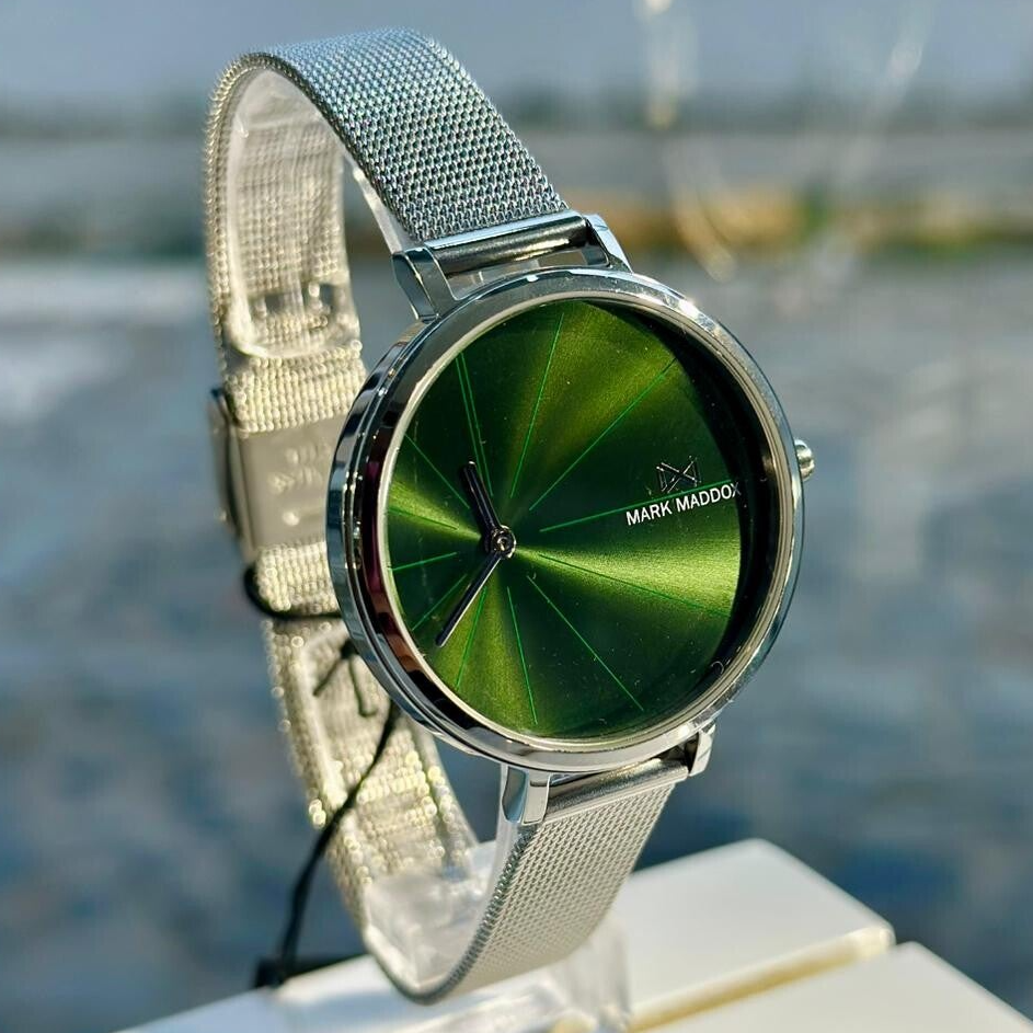 Reloj informal de Mujer Mark Maddox Alfama, dos agujas, caja y malla milanesa de acero, esfera verde y agujas en color plata