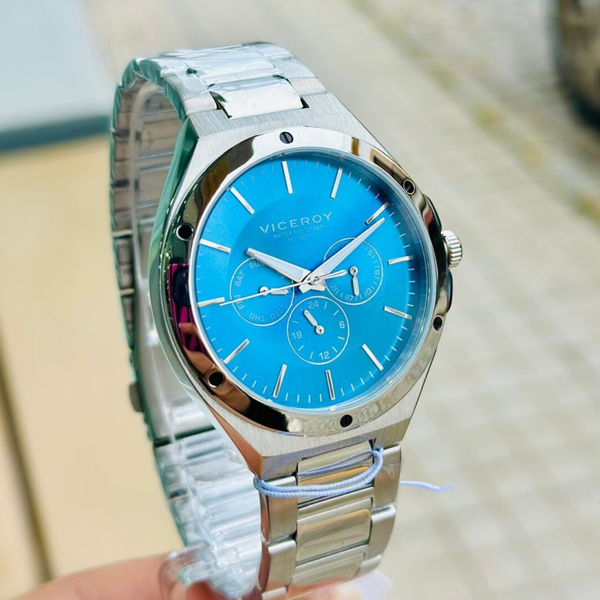Reloj Viceroy 41143-37 para hombre: multifunción, acero, resistente al agua 5 ATM, esfera azul, estilo informal.