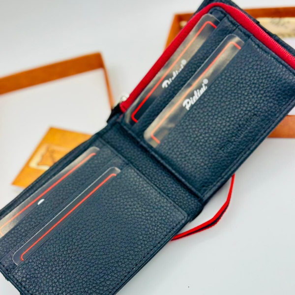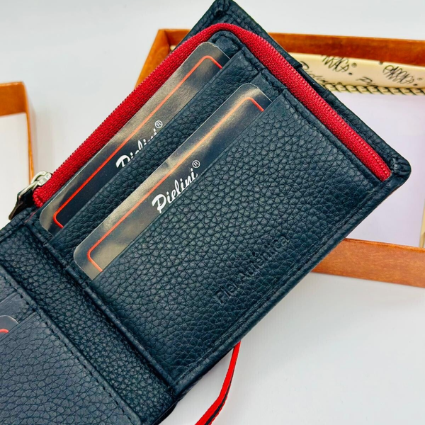 Cartera de cuero azul con gomilla