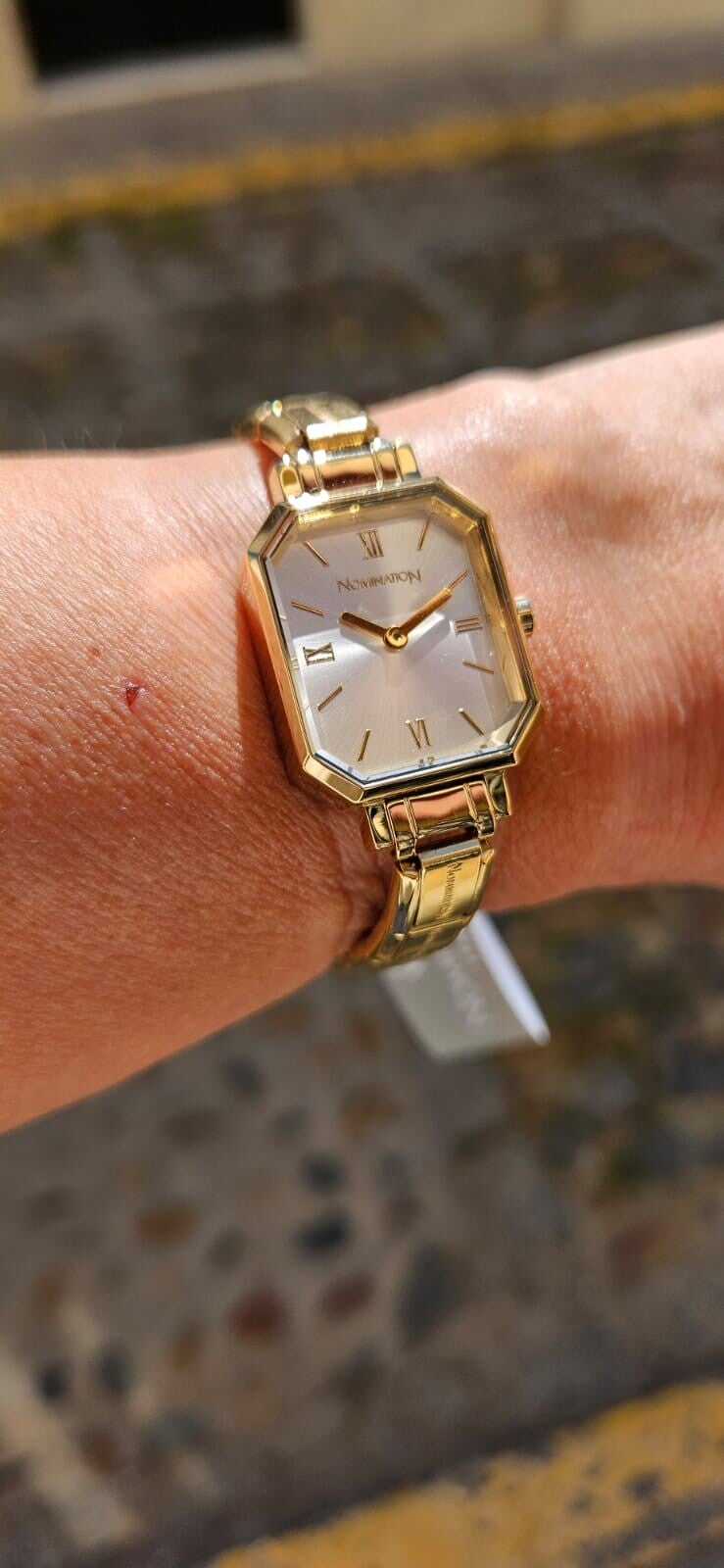Este reloj Nomination combina diseño sofisticado y funcionalidad en una pieza imprescindible para cualquier ocasión. Fabricado en acero inoxidable con acabado dorado, ofrece una estética elegante y moderna que se adapta tanto a looks formales como casuales.