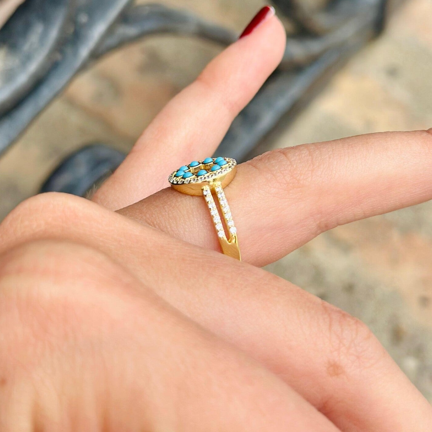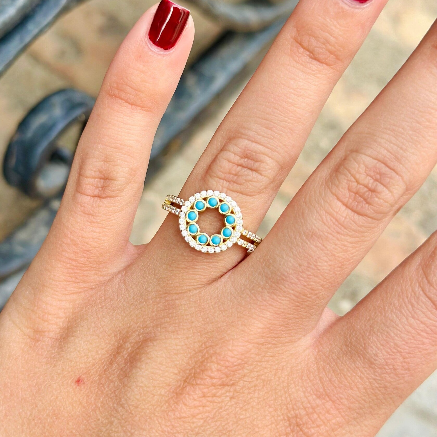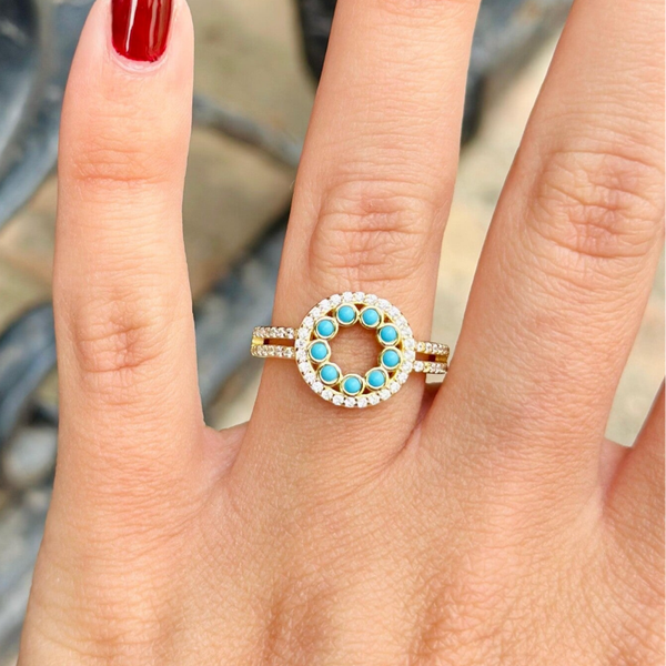 Anillo de plata chapada con circonitas y turquesa