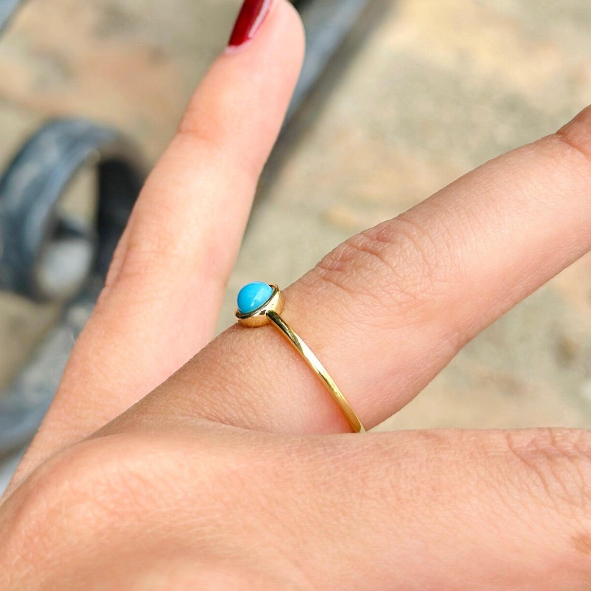 Anillo de plata chapado en oro y turquesa