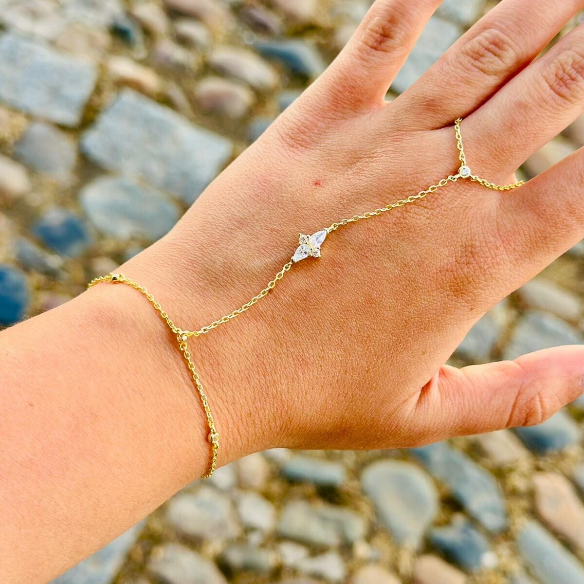 Manitas de plata chapada en oro con circonitas