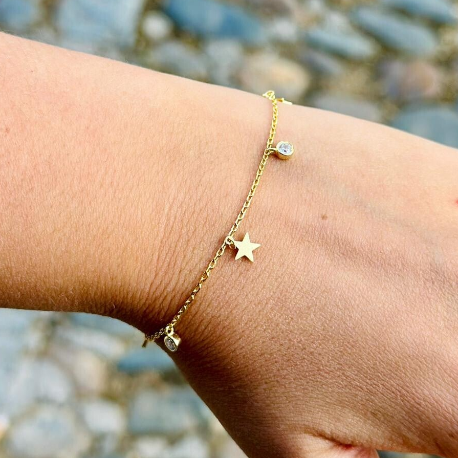 Pulsera de plata chapada en oro con estrelas y circonitas